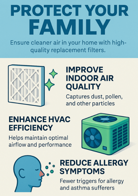 That’s why homeowners who switch to our factory-direct replacements often tell us they notice fewer allergy flare-ups, lower energy bills, and less frequent service calls. It’s not just a filter—it’s peace of mind backed by years of HVAC experience.